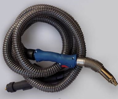 【J 3-6 吸塵夾網管】 這款軟管因其極輕量化與極佳的隨動性,已成為眾多客戶應用於手持式焊接槍的首選。它能配合操作者的動作自由擺動,減少手部負擔,並確保在任何角度下吸力皆維持穩定。